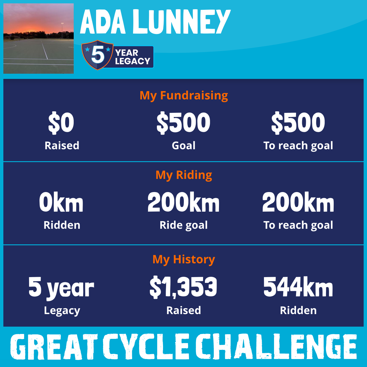 120 km Ridden$716 Raised2023