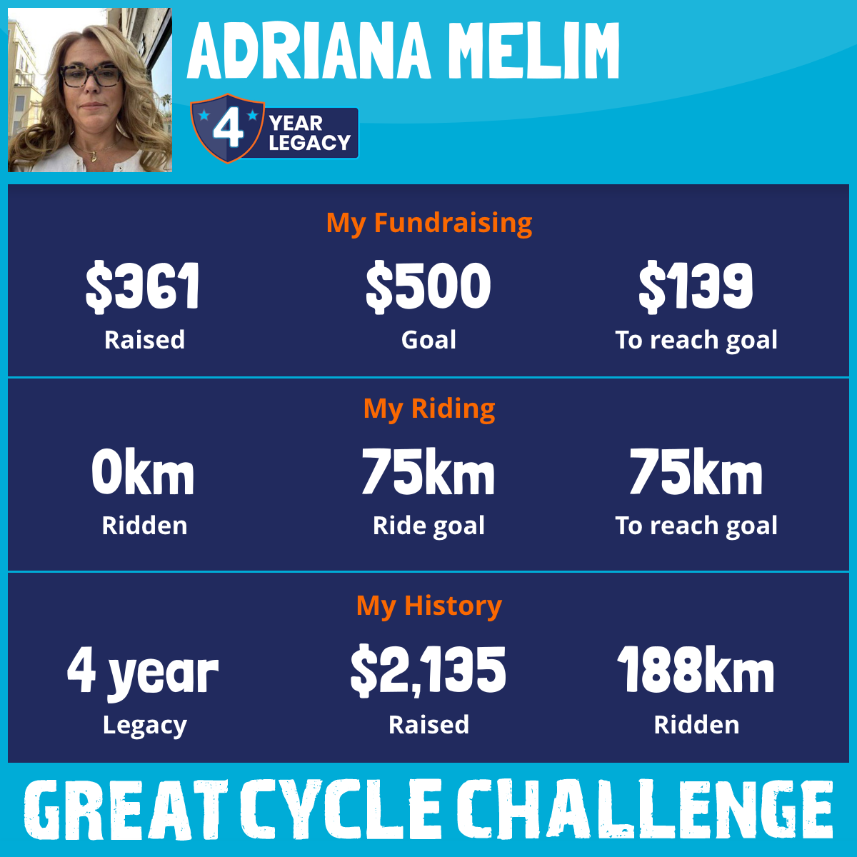 And so I am riding and raising funds to support the Children's Medical Research Institute to continue their work into the prevention, diagnosis, treatment and finding a cure for childhood cancer.