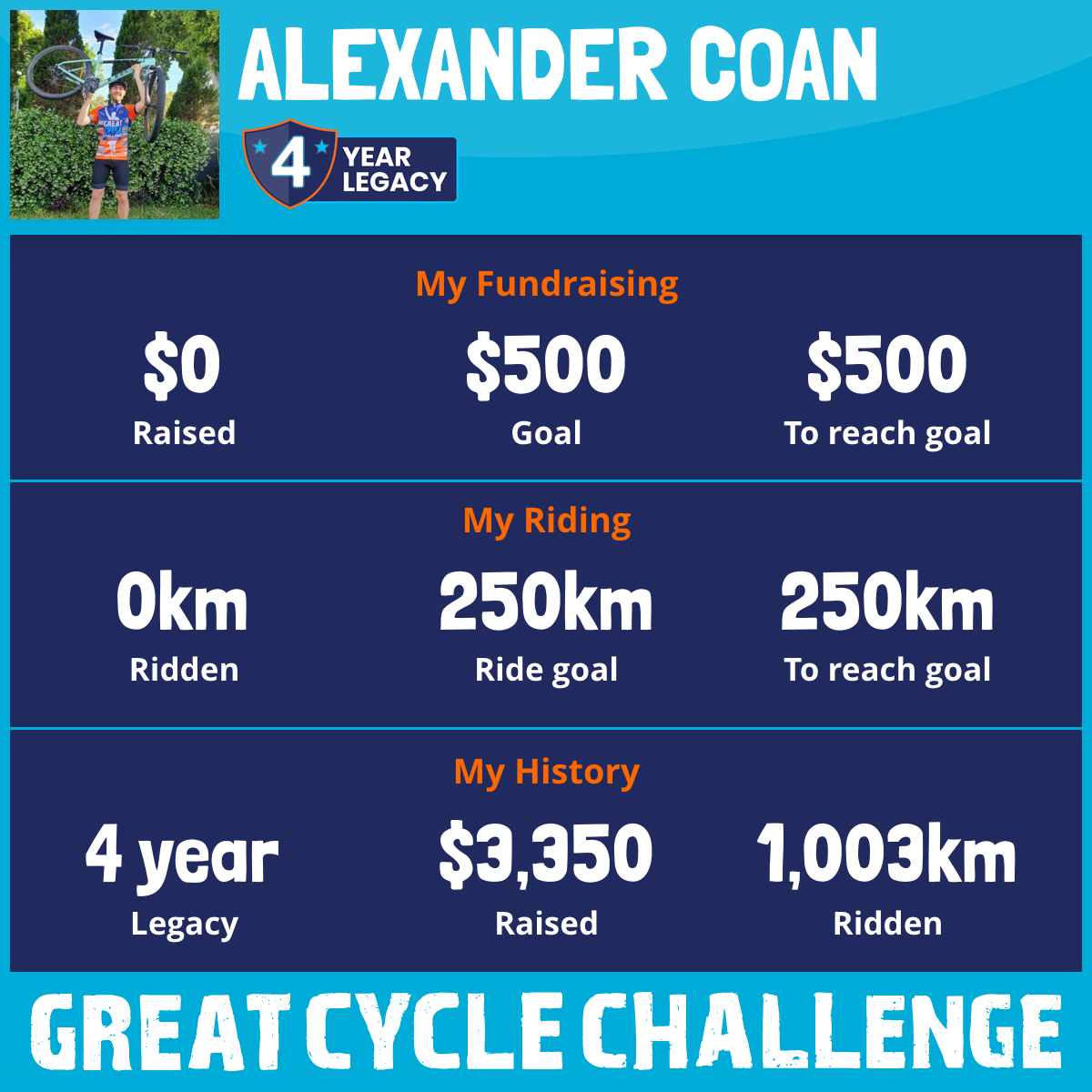 450 km Ridden$1,234 Raised2024