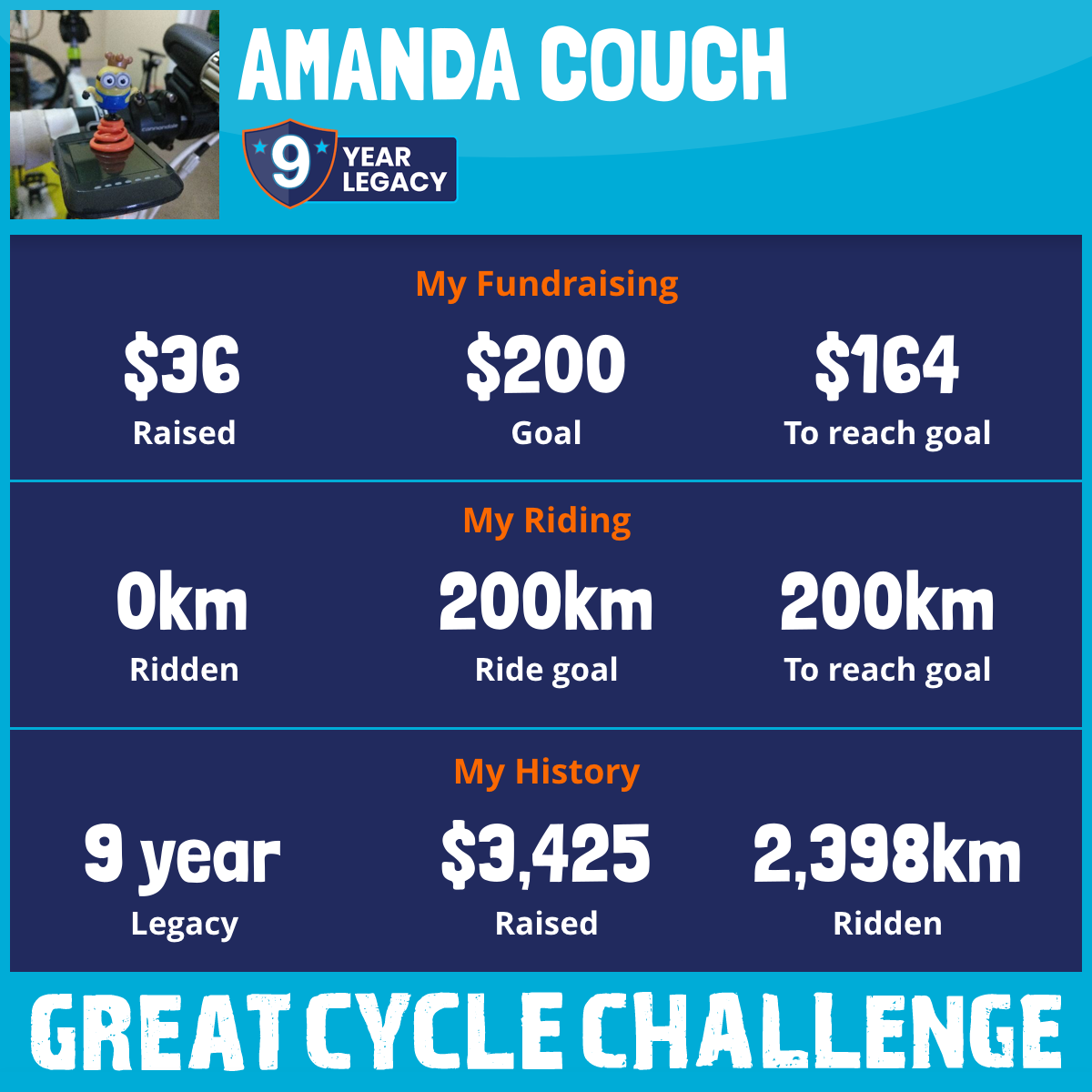 232 km Ridden$50 Raised2018