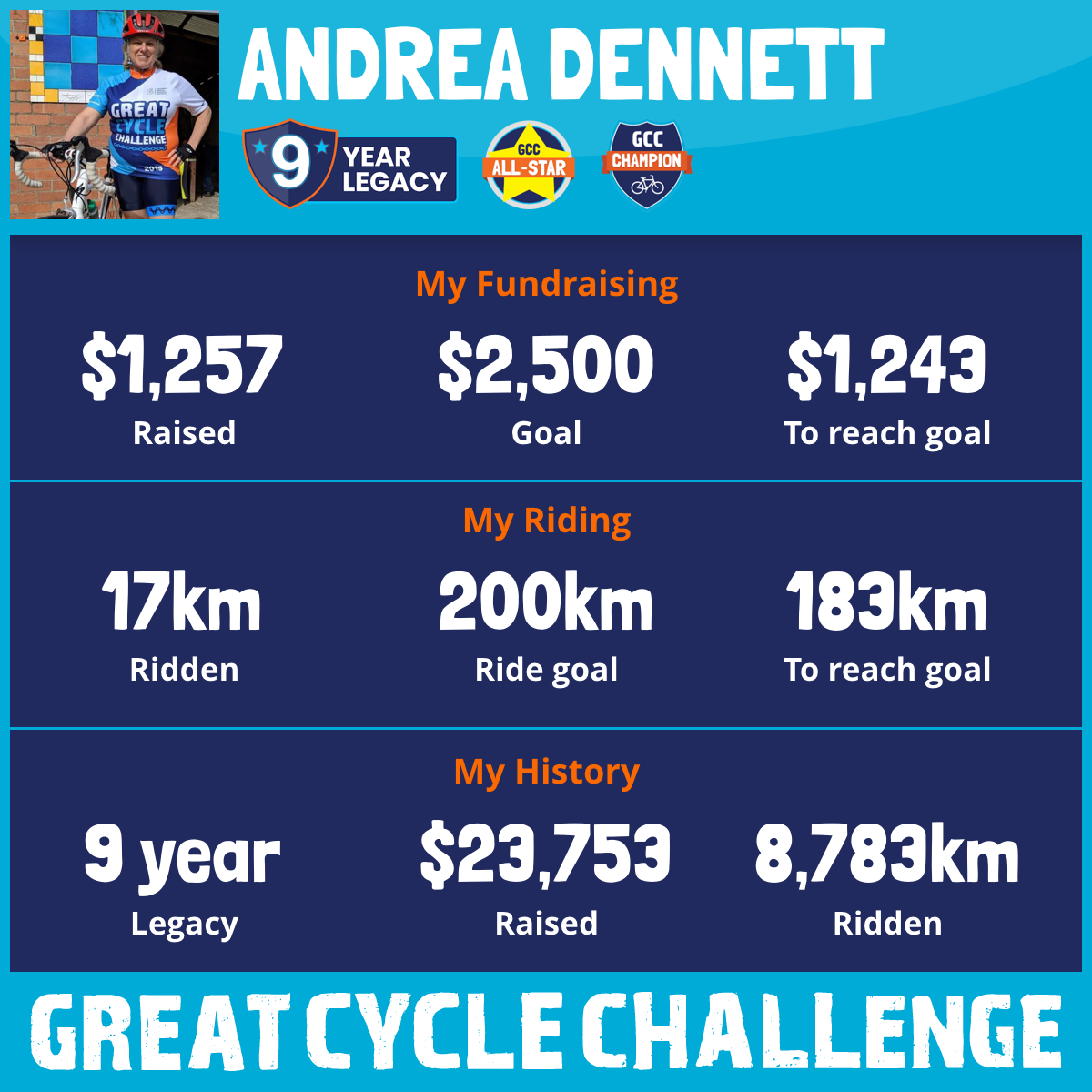 And so I am riding and raising funds to support the Children's Medical Research Institute to continue their work into the prevention, diagnosis, treatment and finding a cure for childhood cancer.