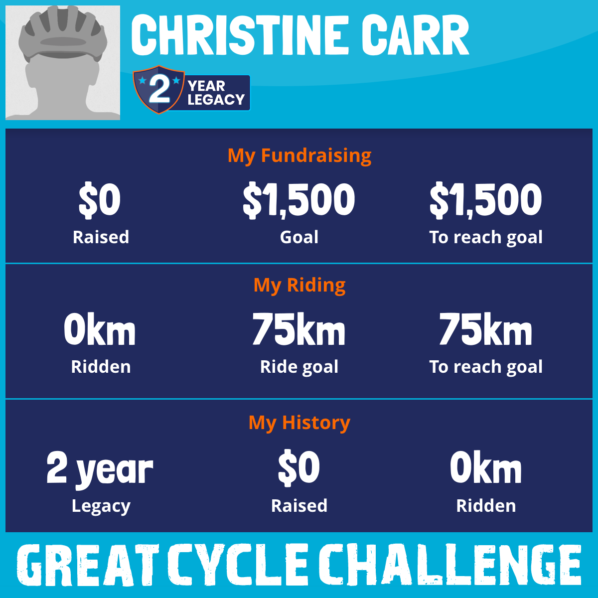 I am riding 75 km in memory of my dad, Mr John Carr. Please sponsor me and support my challenge to fight kids' cancer and save little lives.