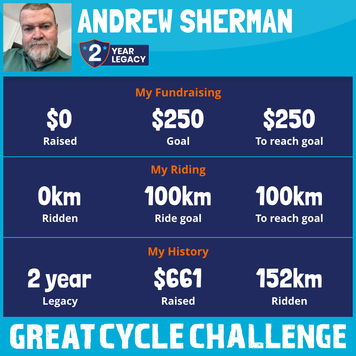 I am riding 100 km in memory of Peter Sherman. Please sponsor me and support my challenge to fight kids' cancer and save little lives.