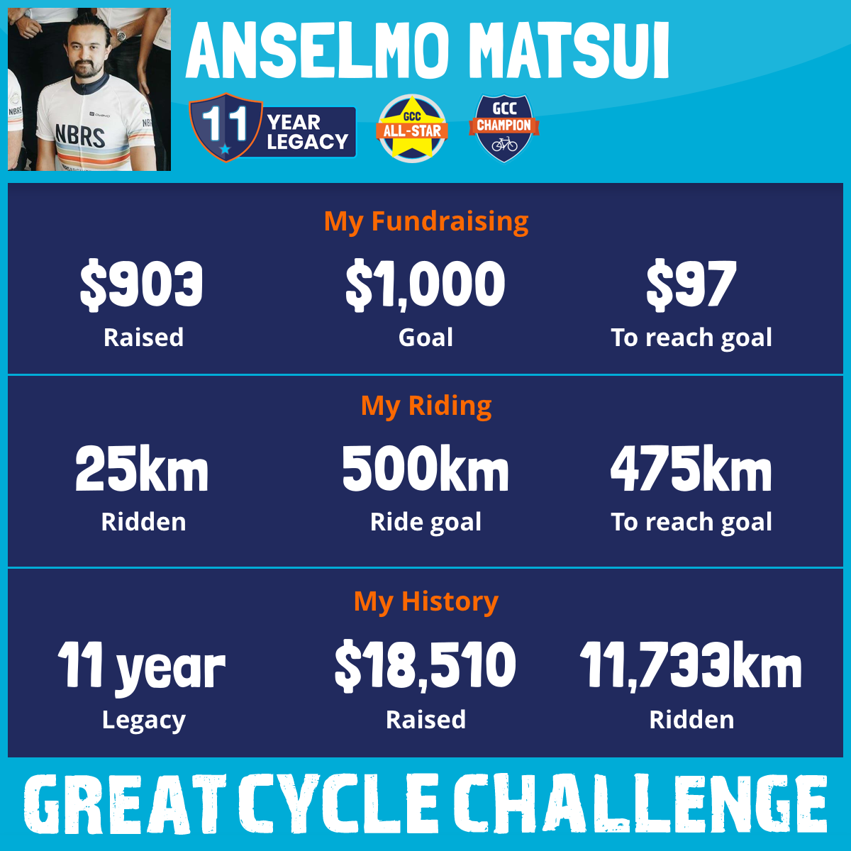 And so I am riding and raising funds to support the Children's Medical Research Institute to continue their work into the prevention, diagnosis, treatment and finding a cure for childhood cancer.