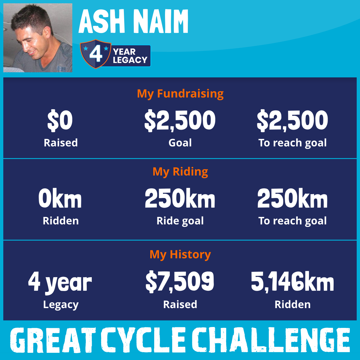 1,597 km Ridden$7,509 Raised2021