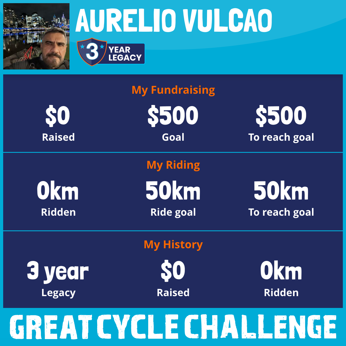 I am riding 50 km for Dad. Please sponsor me and support my challenge to fight kids' cancer and save little lives.