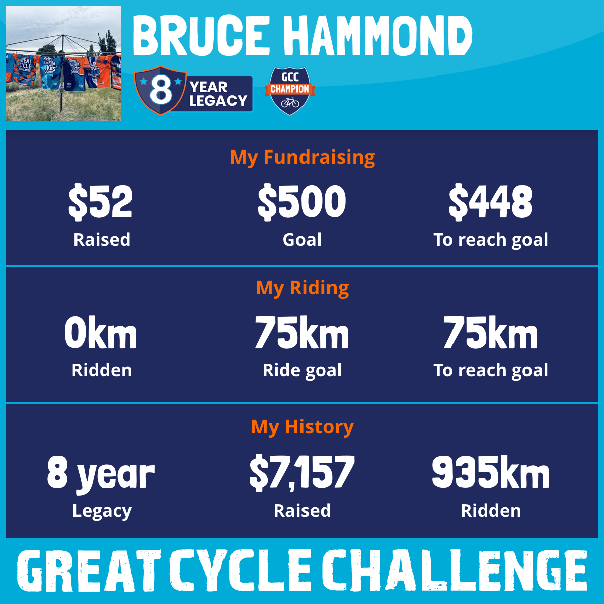 Bruce Hammond aiming to reach target of 1000km