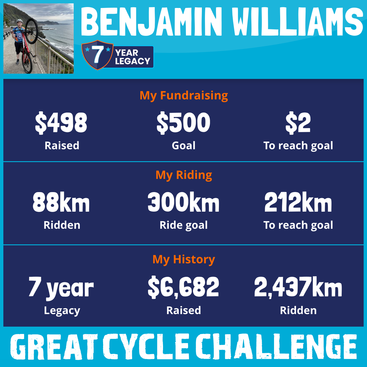 And so I am riding and raising funds to support the Children's Medical Research Institute to continue their work into the prevention, diagnosis, treatment and finding a cure for childhood cancer.