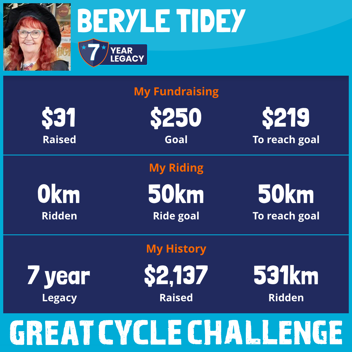 I am riding 50 km for Patricia O'Brien, Mary Blood, Paul Dewsnap, Dale Griffith. Please sponsor me and support my challenge to fight kids' cancer and save little lives.
