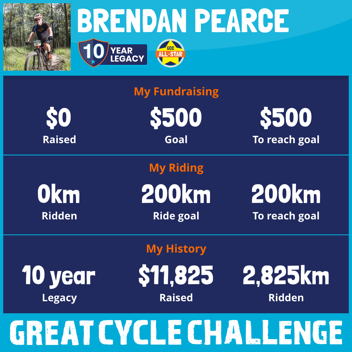 THANK YOU for those who have helped support me building a 10-year legacy in the challenge! During this time I have raised close to $12,000 and ridden nearly 3,000 km to help ensure that kids affected by cancer have the chance to live life, not fight for it and excited to see what I can achieve in 2025