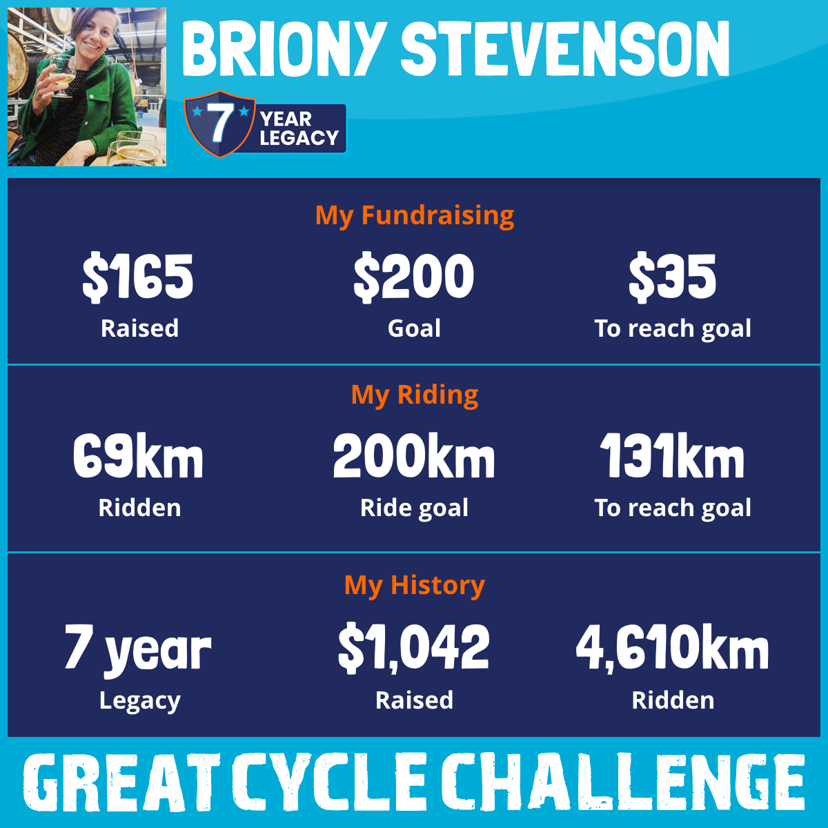 And so I am riding and raising funds to support the Children's Medical Research Institute to continue their work into the prevention, diagnosis, treatment and finding a cure for childhood cancer.