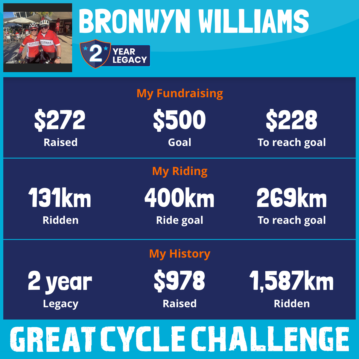And so I am riding and raising funds to support the Children's Medical Research Institute to continue their work into the prevention, diagnosis, treatment and finding a cure for childhood cancer.