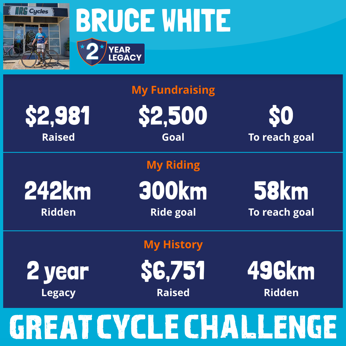 242 km Ridden$2,981 Raised2025