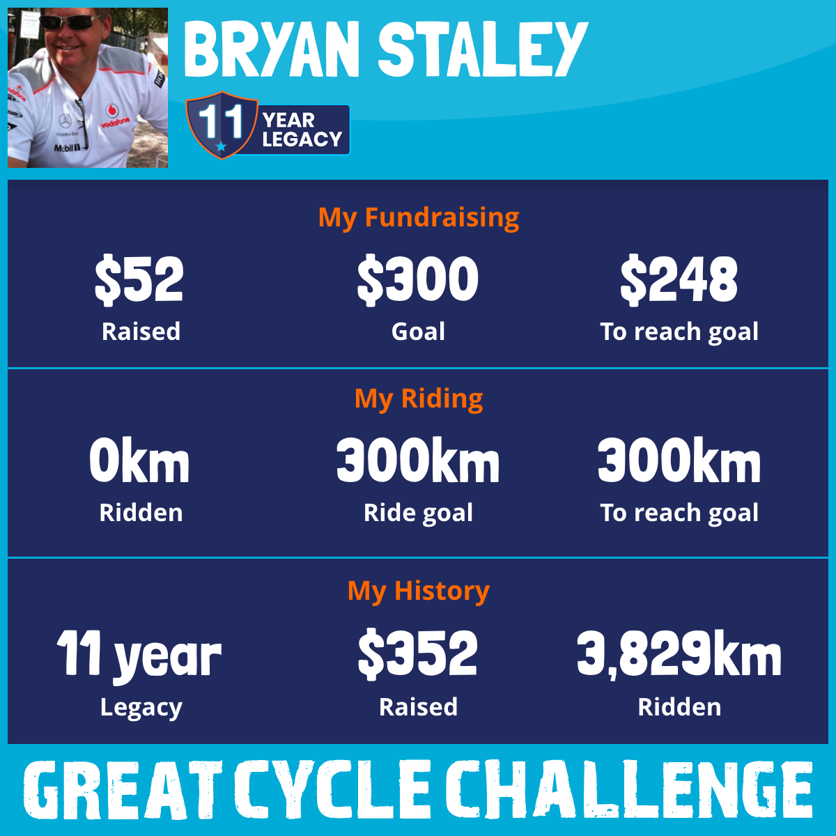 I am riding 300 km for Bryan. Please sponsor me and support my challenge to fight kids' cancer and save little lives.