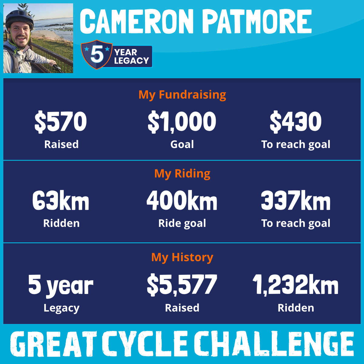 302 km Ridden$1,179 Raised2024