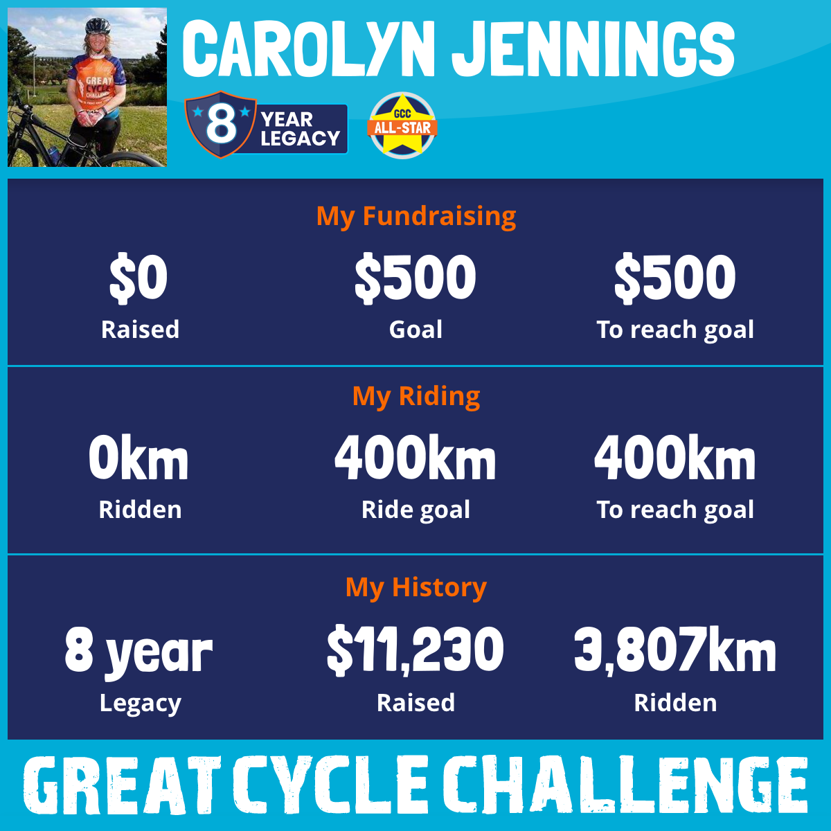 So far, I have ridden 3517 km across the last 7 years & raised $10,522! Now I am in my 7th year of this challenge. Please help me make it my best yet. Donations over $2 are tax deductible.