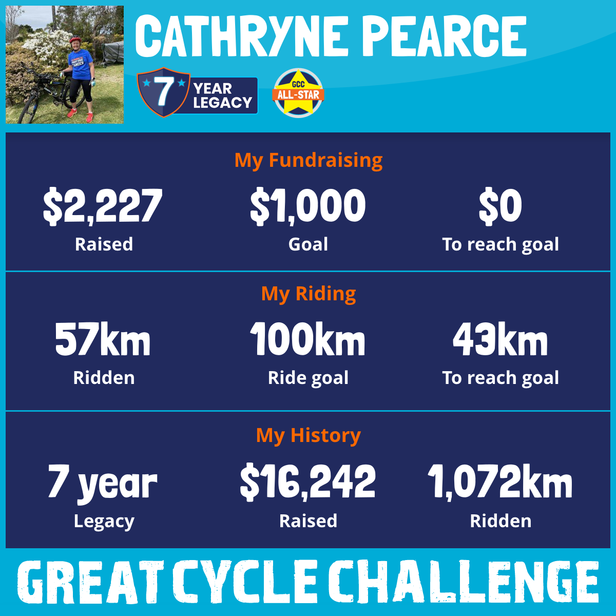 And so I am riding and raising funds to support the Children's Medical Research Institute to continue their work into the prevention, diagnosis, treatment and finding a cure for childhood cancer.