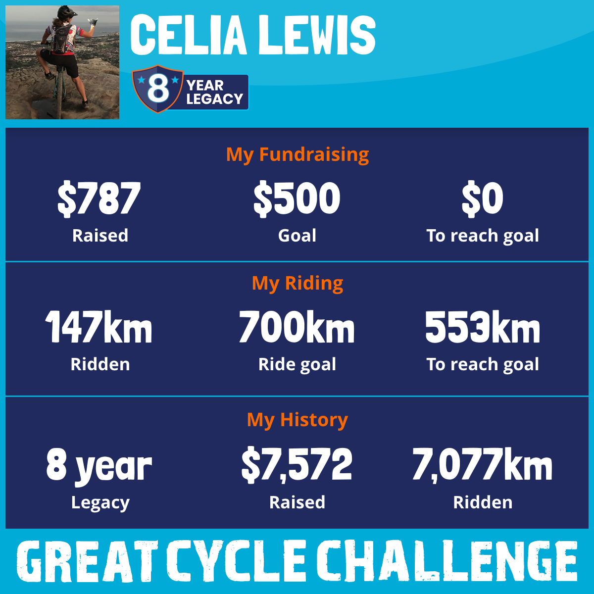 1,047 km Ridden$1,283 Raised2023