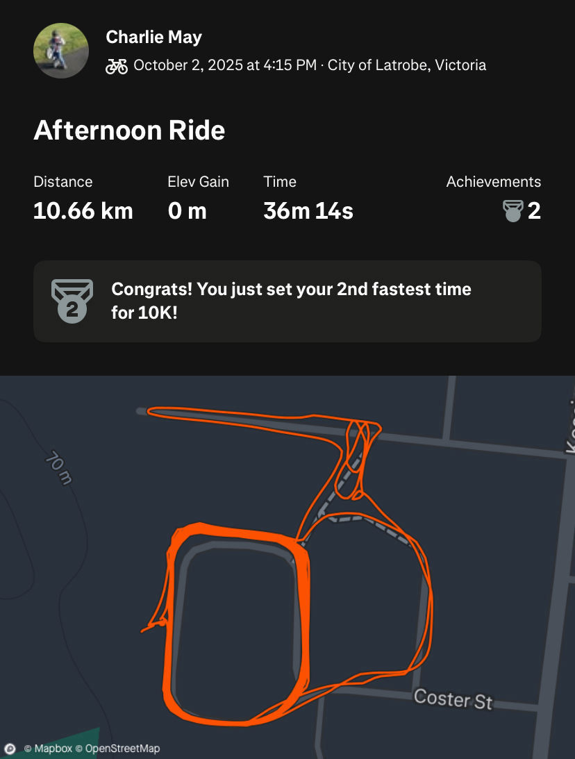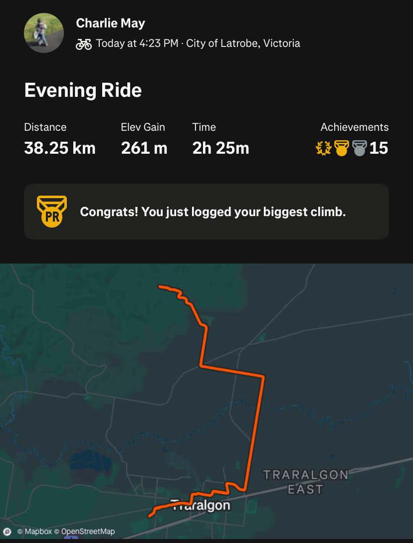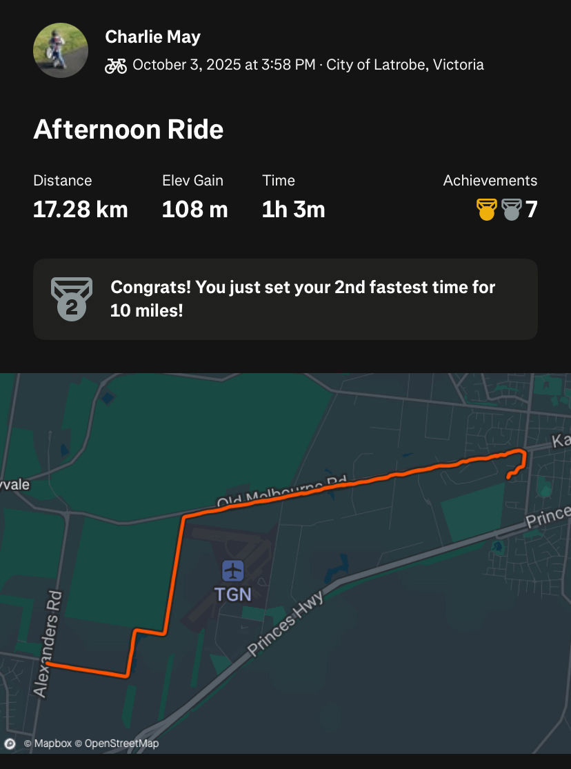 17.3 km ride - To Morwell and back - Friday, October 3, 2025