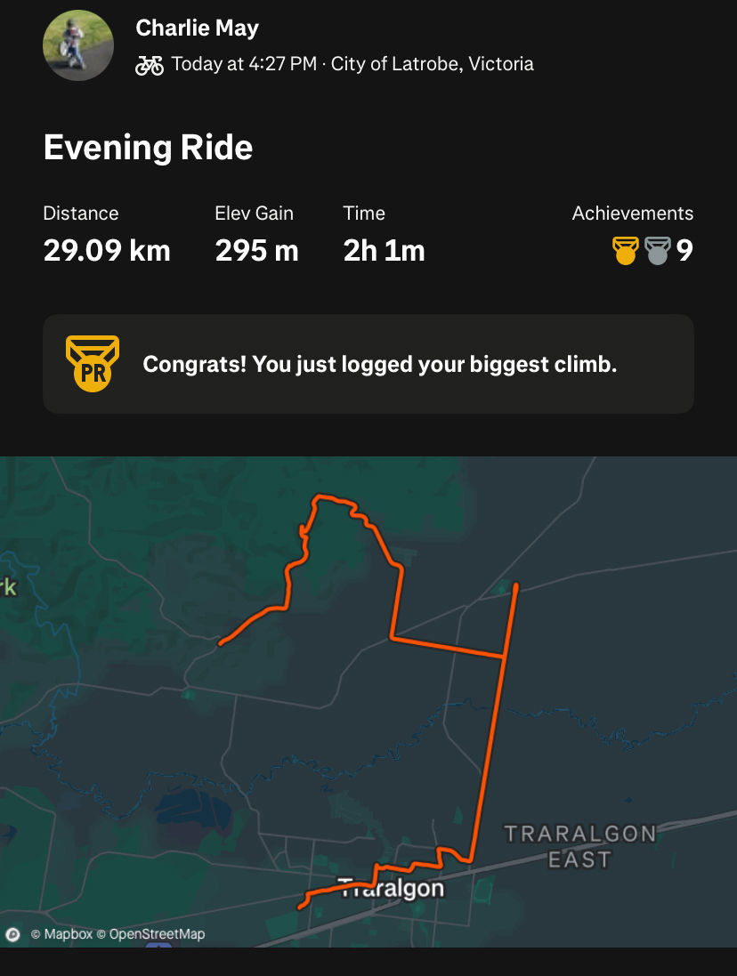 29.1 km ride - To Glengary then to Tyres - Tuesday, October 7, 2025