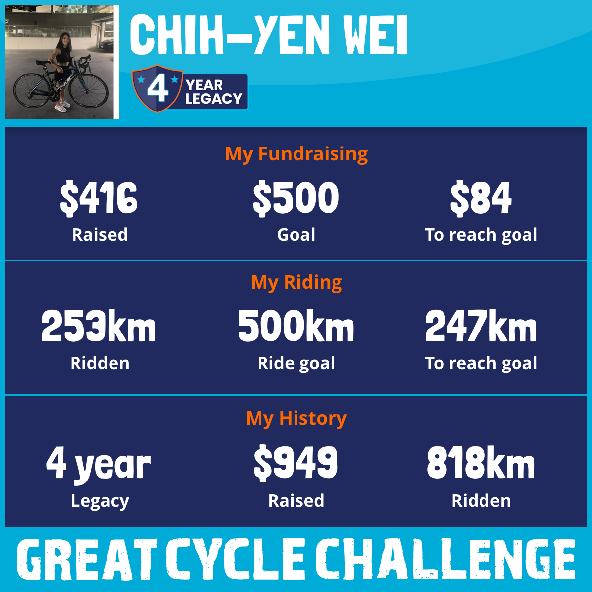 And so I am riding and raising funds to support the Children's Medical Research Institute to continue their work into the prevention, diagnosis, treatment and finding a cure for childhood cancer.