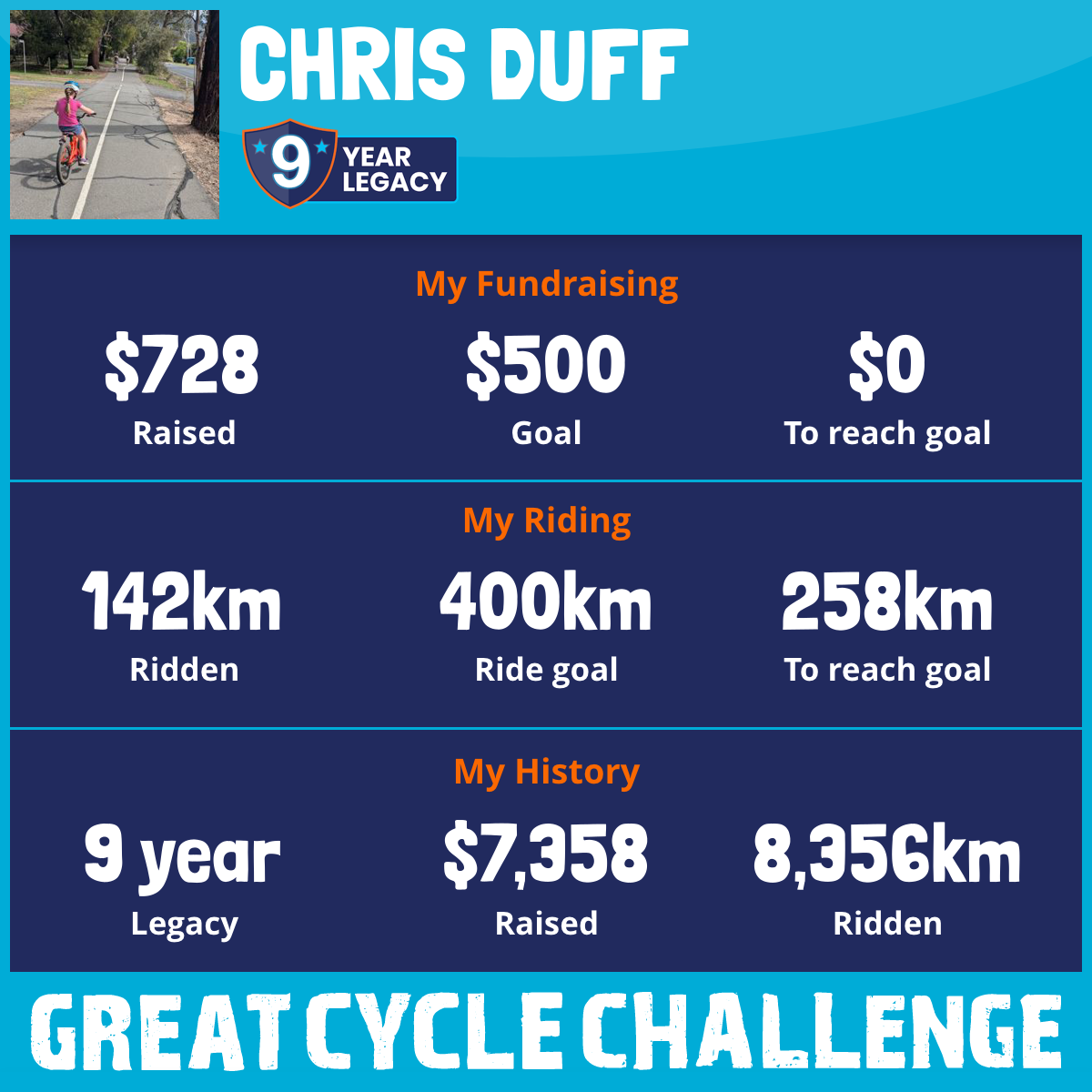 And so I am riding and raising funds to support the Children's Medical Research Institute to continue their work into the prevention, diagnosis, treatment and finding a cure for childhood cancer.