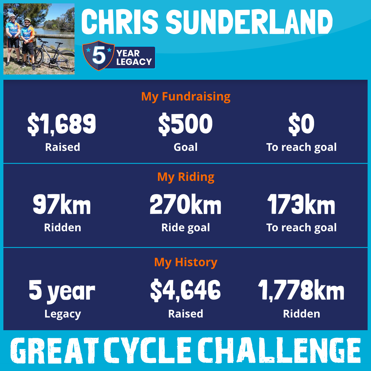 While all funds raised will go towards stopping kid's cancer - the biggest single killer of children from disease in Australia - I am also riding in solidarity for my mate Mark. Mark is fighting his own battle with cancer at the moment and has bravely signed up to ride himself! Shows what an awesome selfless bloke he is.