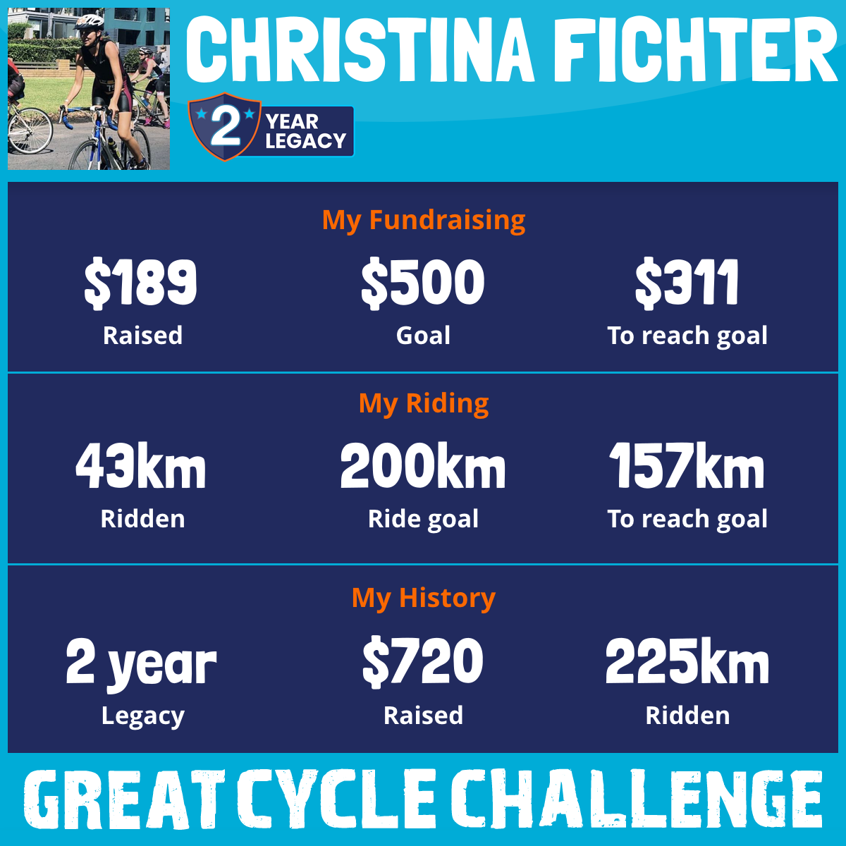 And so I am riding and raising funds to support the Children's Medical Research Institute to continue their work into the prevention, diagnosis, treatment and finding a cure for childhood cancer.