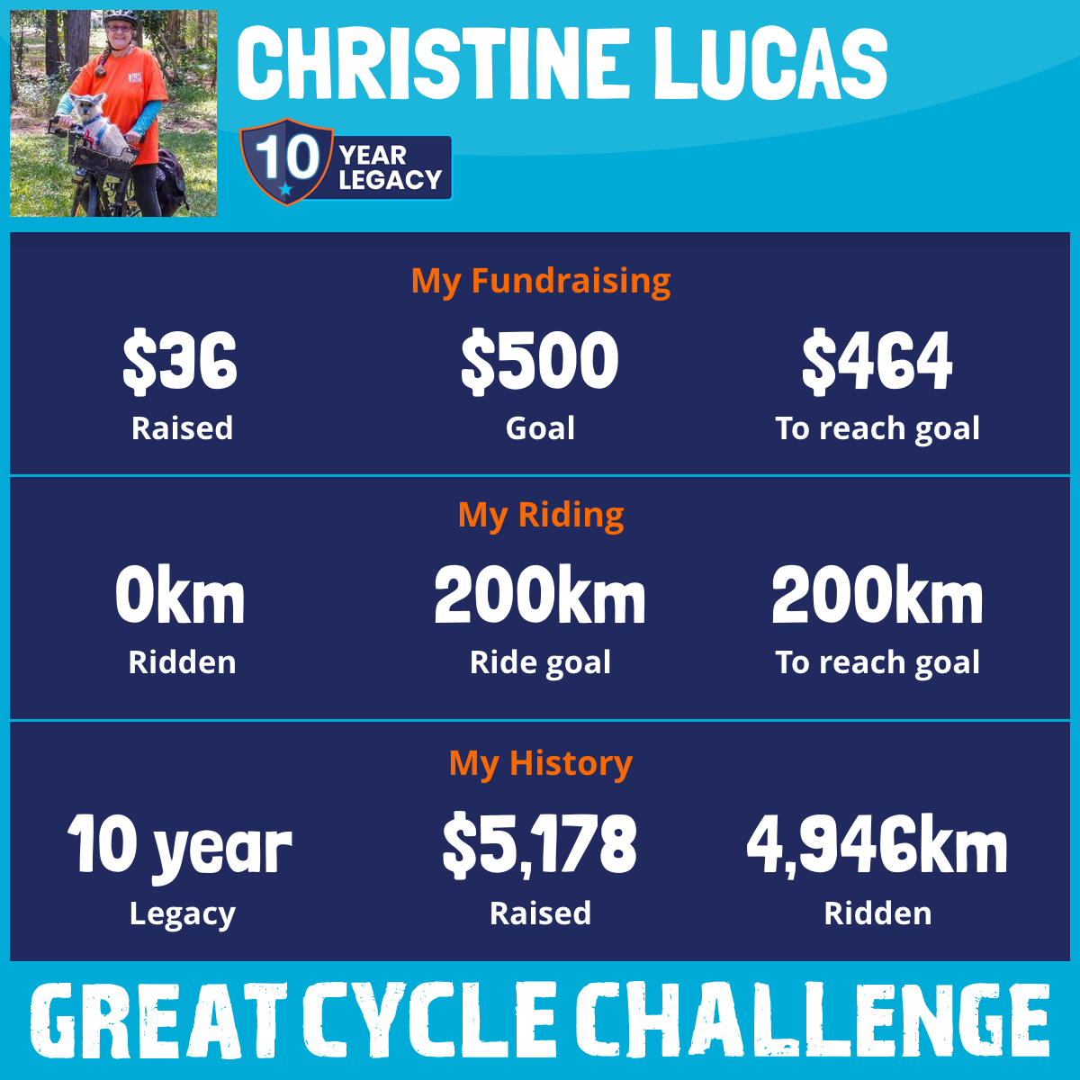 I started participating in this Great Cycle Challenge in 2016, the year a friend's daughter was diagnosed with Leukemia. Now her life has returned to normal, thankful the horror she and her family went through now behind them. Thanks to research many happy children survive diseases that once only had a sad ending.