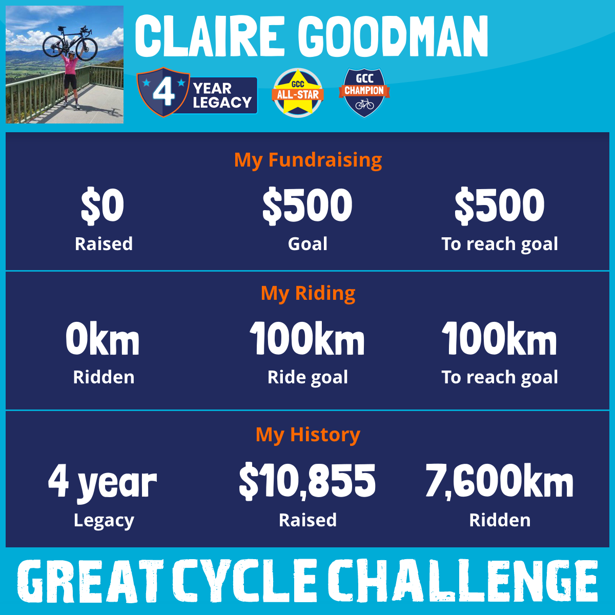 3,143 km Ridden$2,323 Raised2022