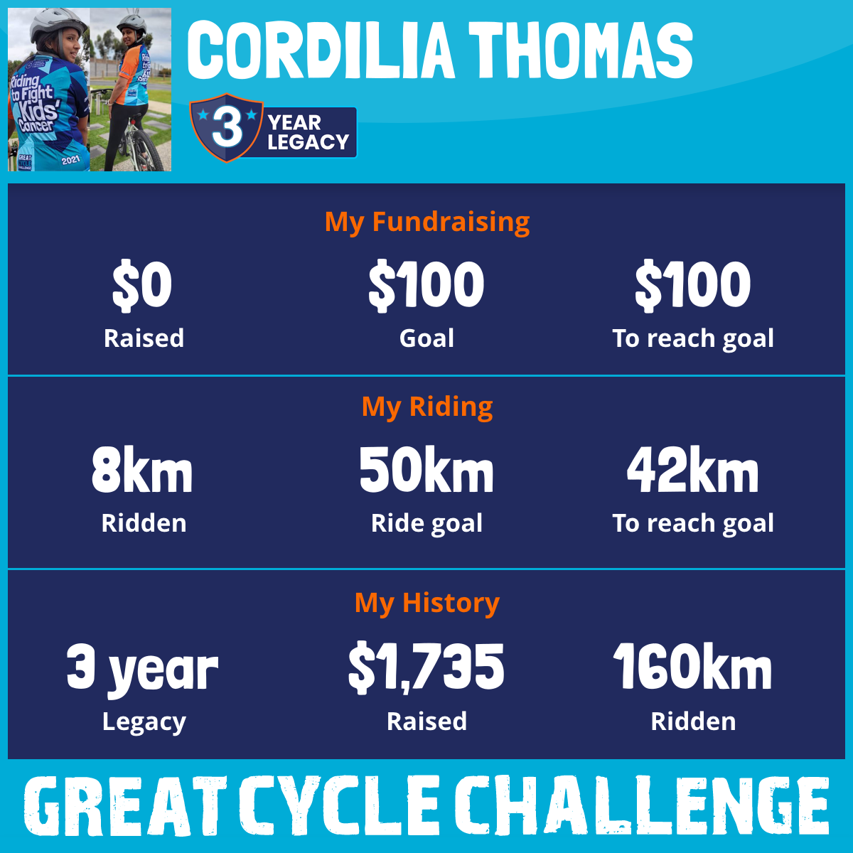 And so I am riding and raising funds to support the Children's Medical Research Institute to continue their work into the prevention, diagnosis, treatment and finding a cure for childhood cancer.