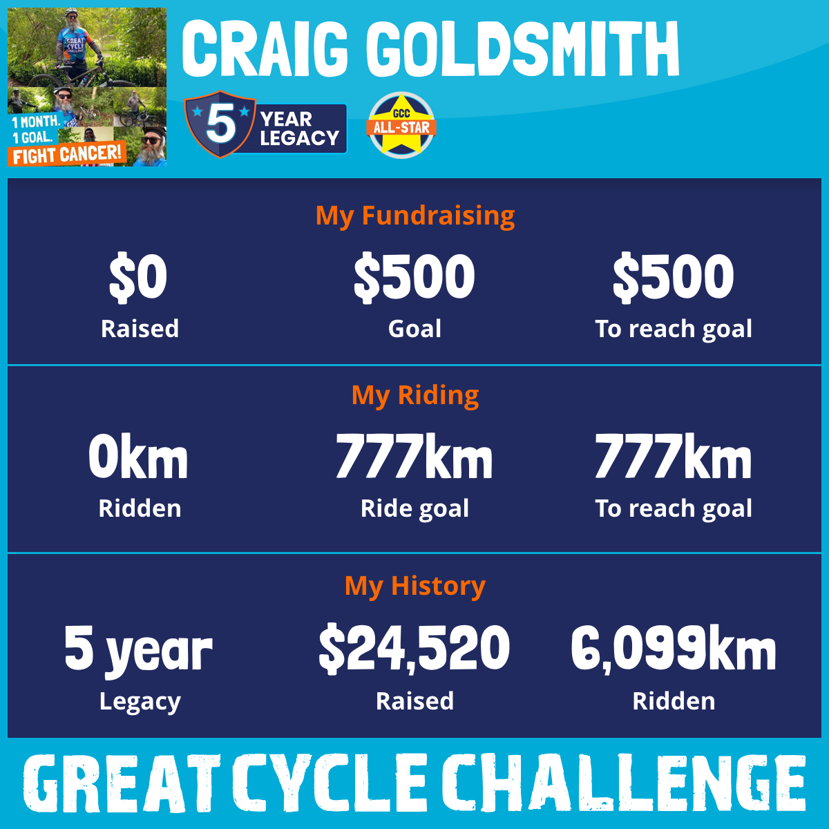 1,889 km Ridden$6,040 Raised2023