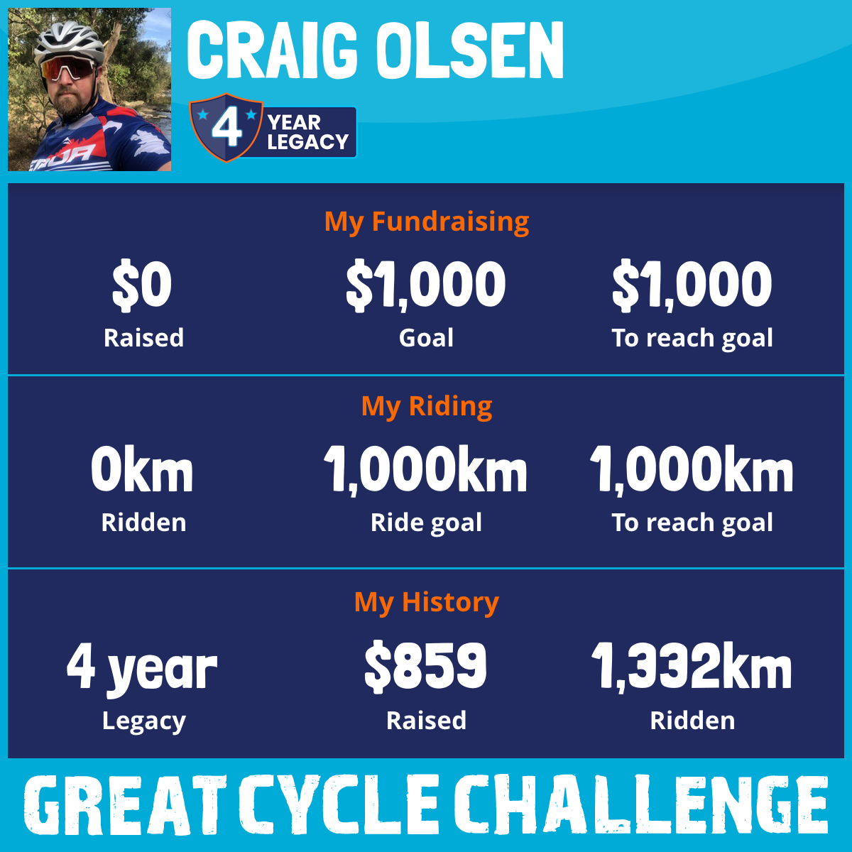 October is the month I try to help make a difference for kids battling with cancer in Australia. My goal is to ride at least 500kms (I want to try and hit 750kms) and raise at least $1000.00 for this awesome cause. $2000.00 would be even better! This will be my 4th year taking part in this.