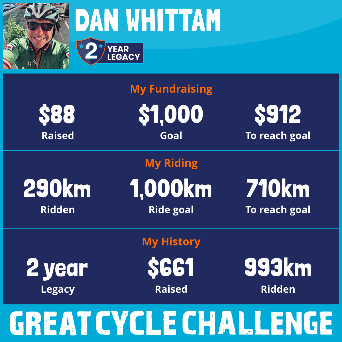 290 km Ridden$88 Raised2025