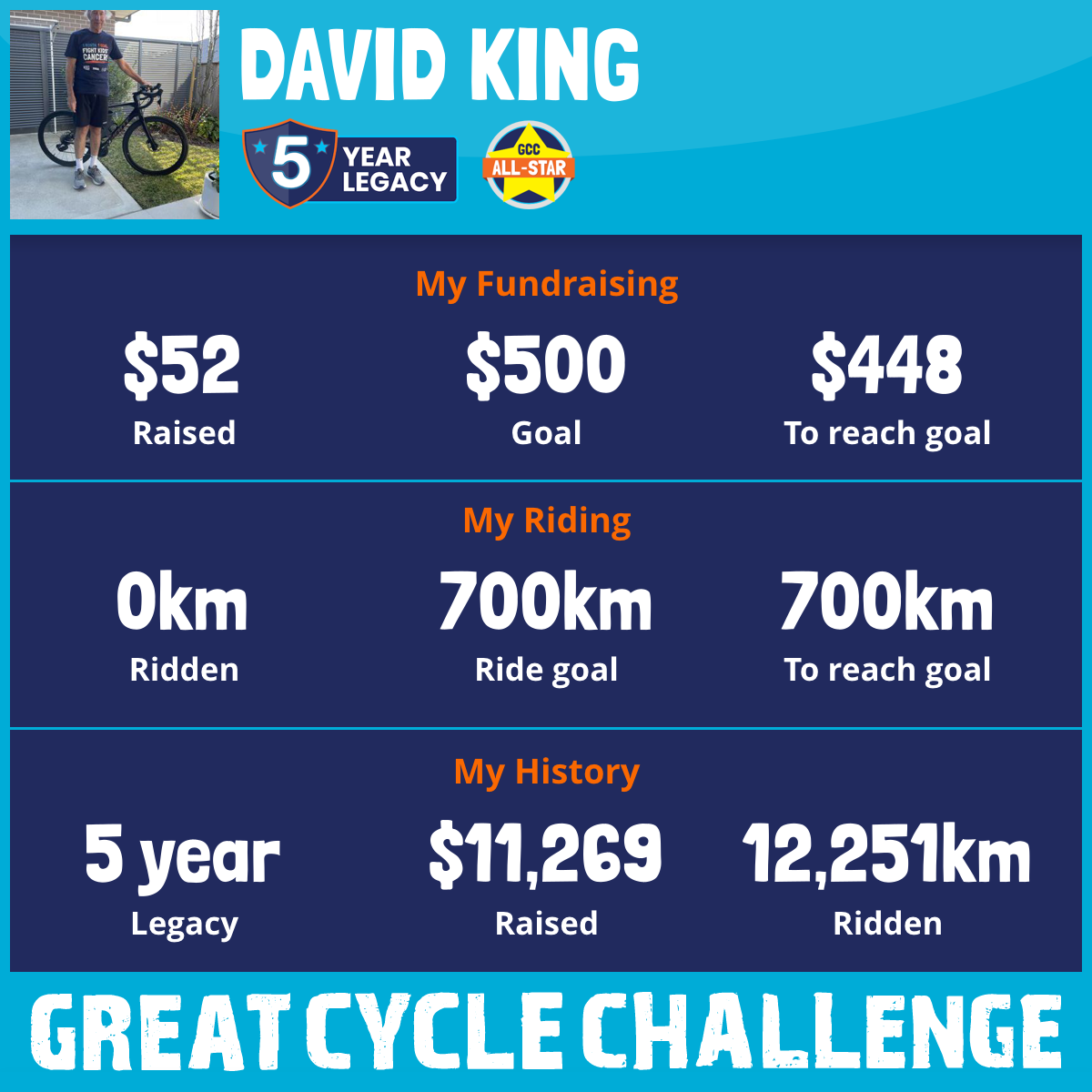 1 Oct 2025It goes without saying that the support I've had has been awesome. My first ride of my pledge to ride 800km was today and since that ride further donations have meant that my previous target has been met.