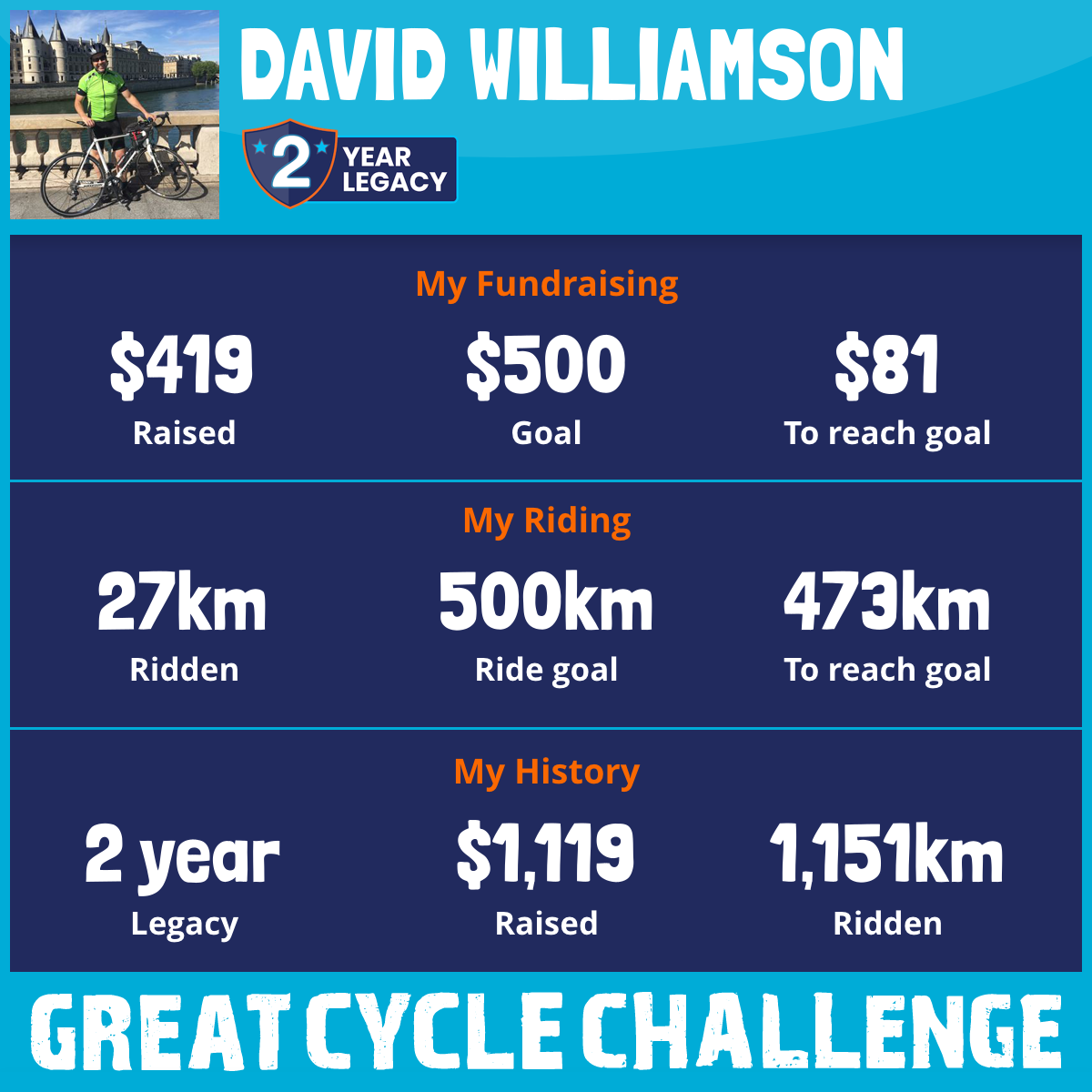 This October, I am taking part in the Great Cycle Challenge to fight kids' cancer!