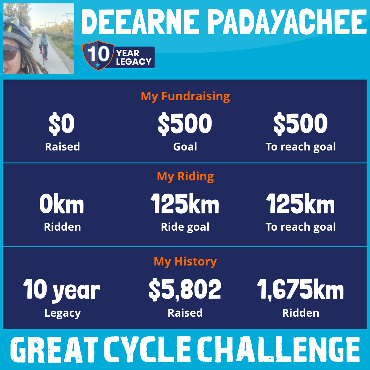 And so I am riding and raising funds to support the Children's Medical Research Institute to continue their work into the prevention, diagnosis, treatment and finding a cure for childhood cancer.
