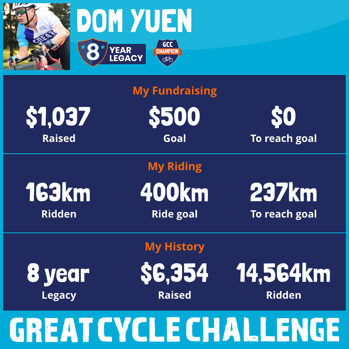 And so I am riding and raising funds to support the Children's Medical Research Institute to continue their work into the prevention, diagnosis, treatment and finding a cure for childhood cancer.