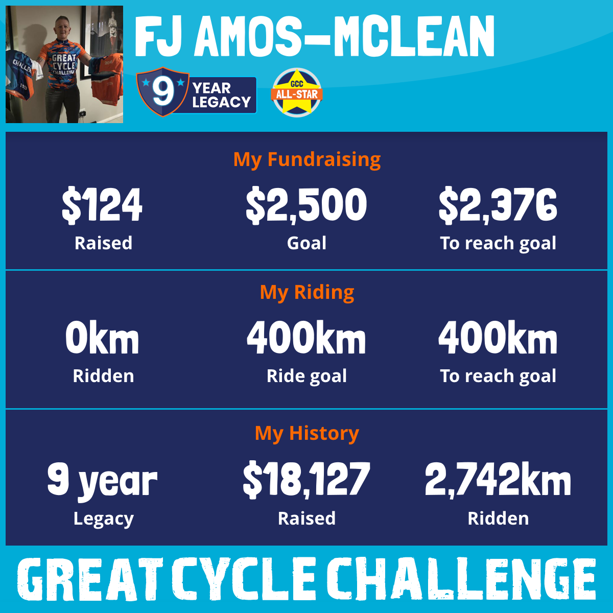 100 km Ridden$2,362 Raised2025