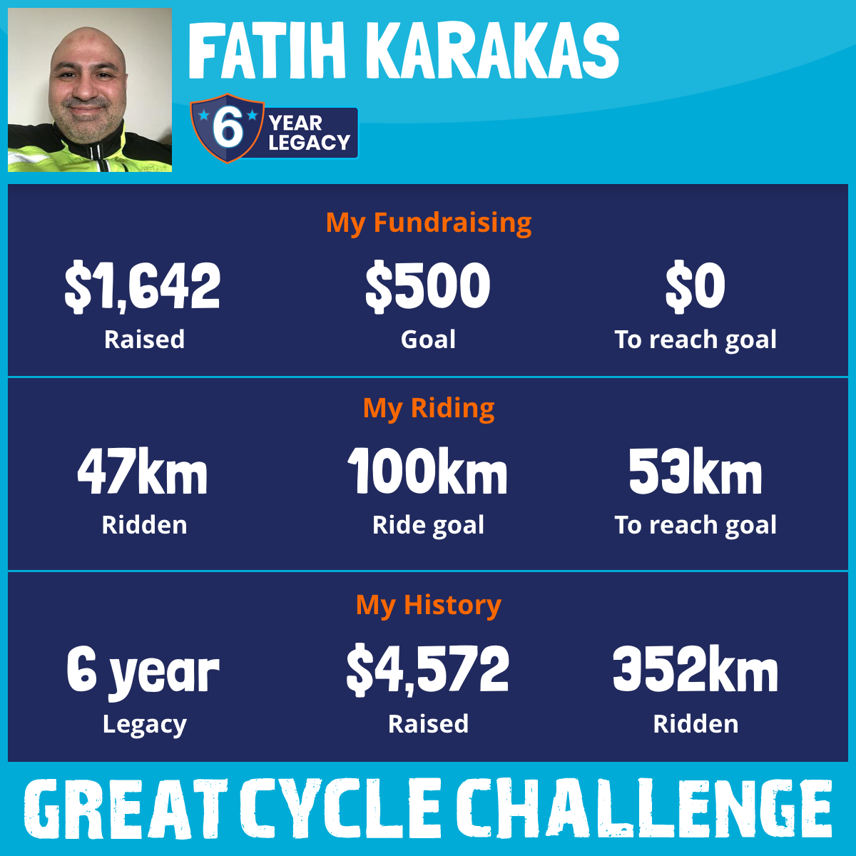 47 km Ridden$1,642 Raised2025