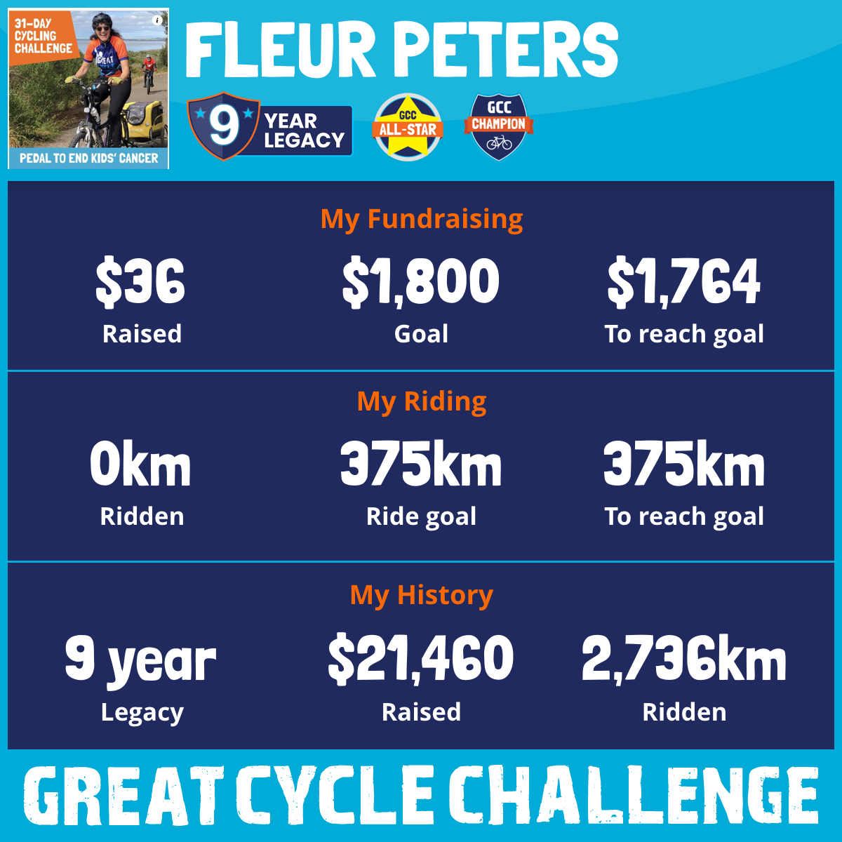 I've had some recent medical issues but nothing that is going to prevent me participating in this year's challenge. We've lost kids since we rode last year, and right now cancer is the largest single killer of children from disease in Australia – over 600 children are diagnosed with cancer every year and sadly, 3 die every week.