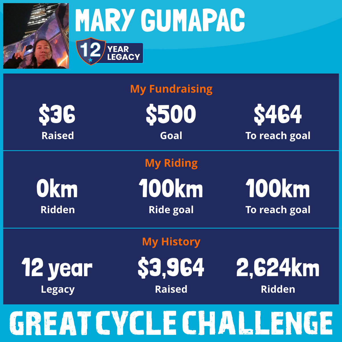 120 km Ridden$745 Raised2019