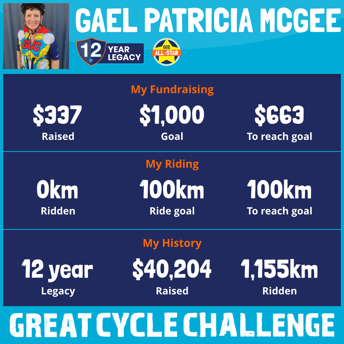 And so I am riding and raising funds to support the Children's Medical Research Institute to continue their work into the prevention, diagnosis, treatment and finding a cure for childhood cancer.