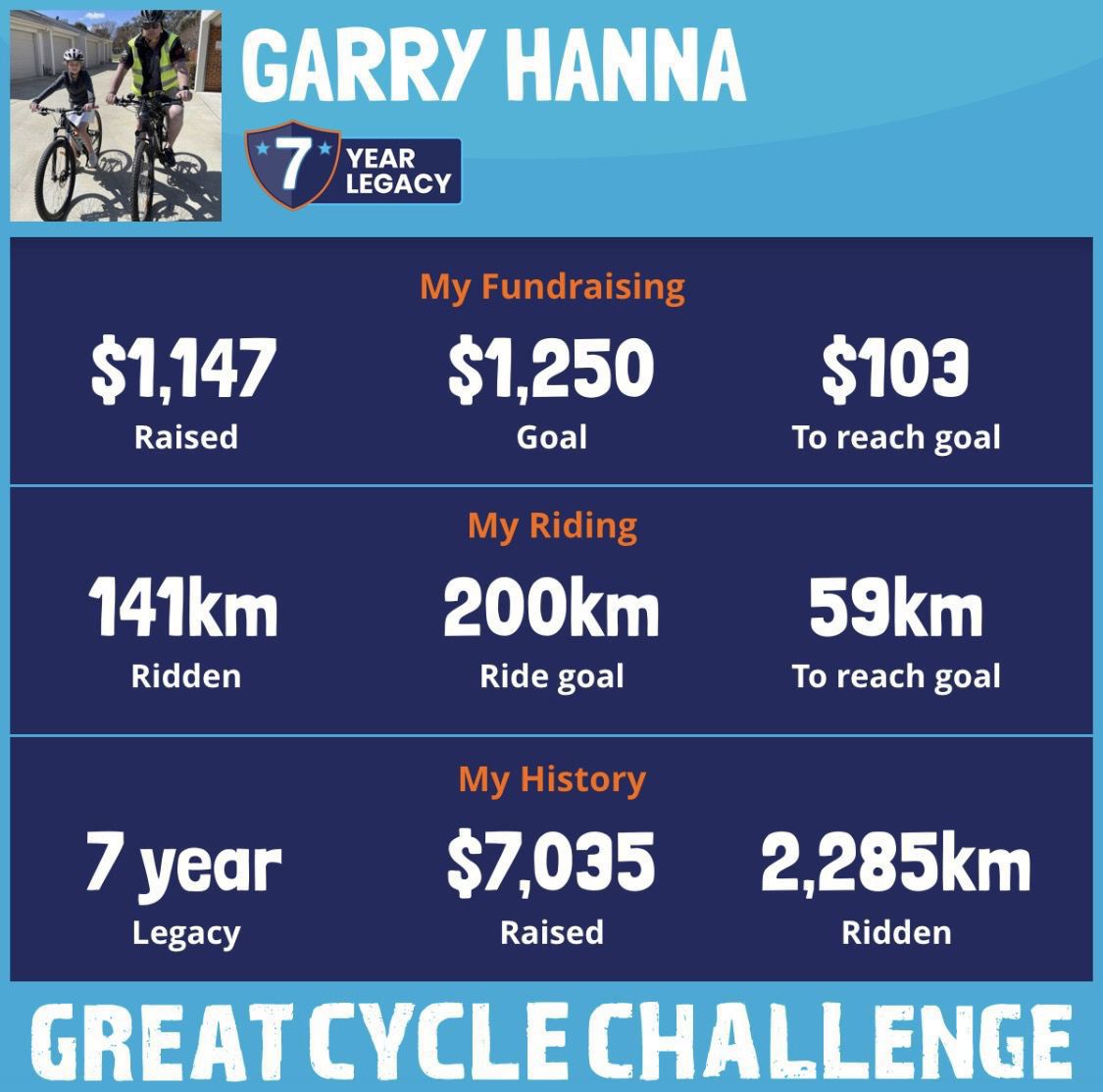 141 km Ridden$1,555 Raised2025