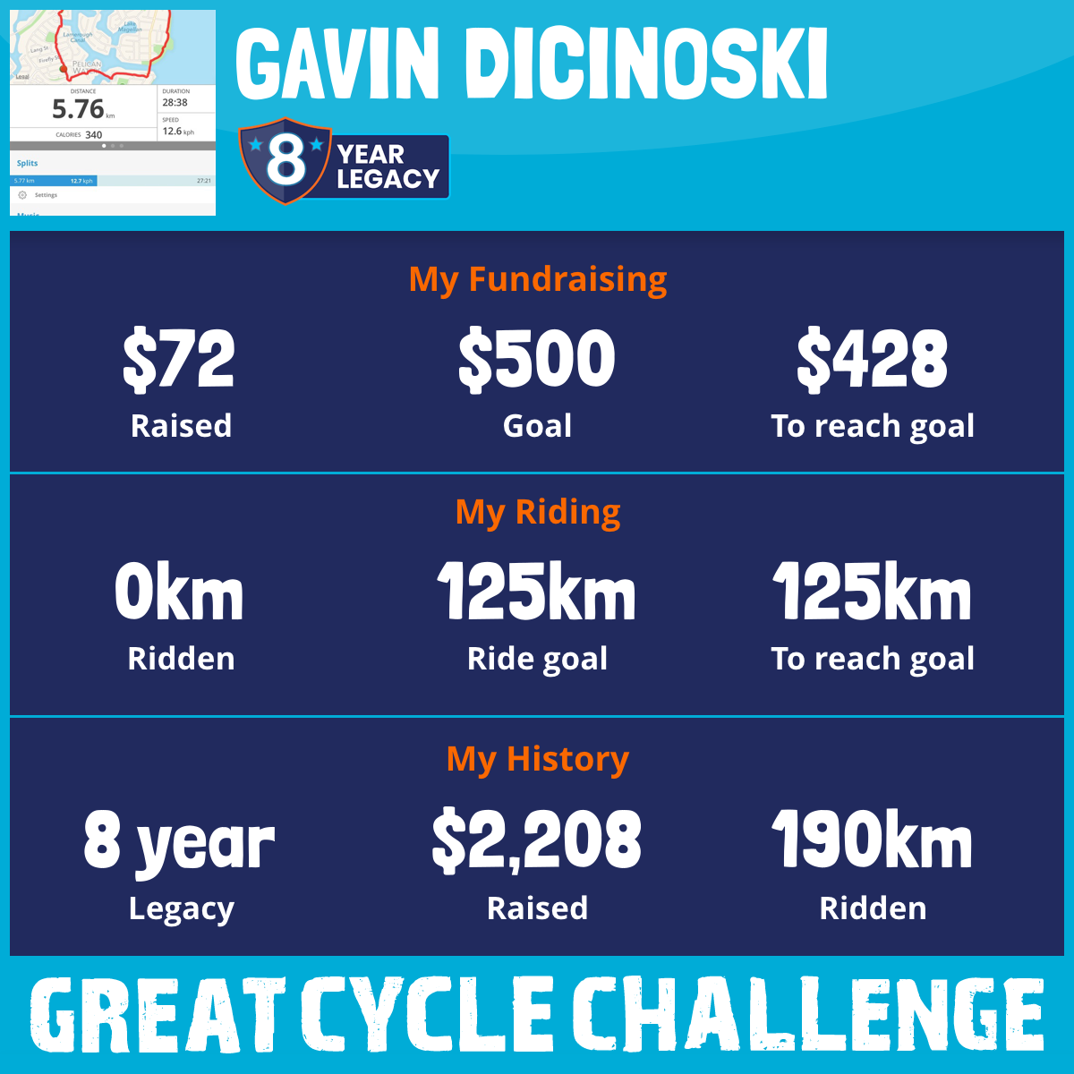 102 km Ridden$506 Raised2018