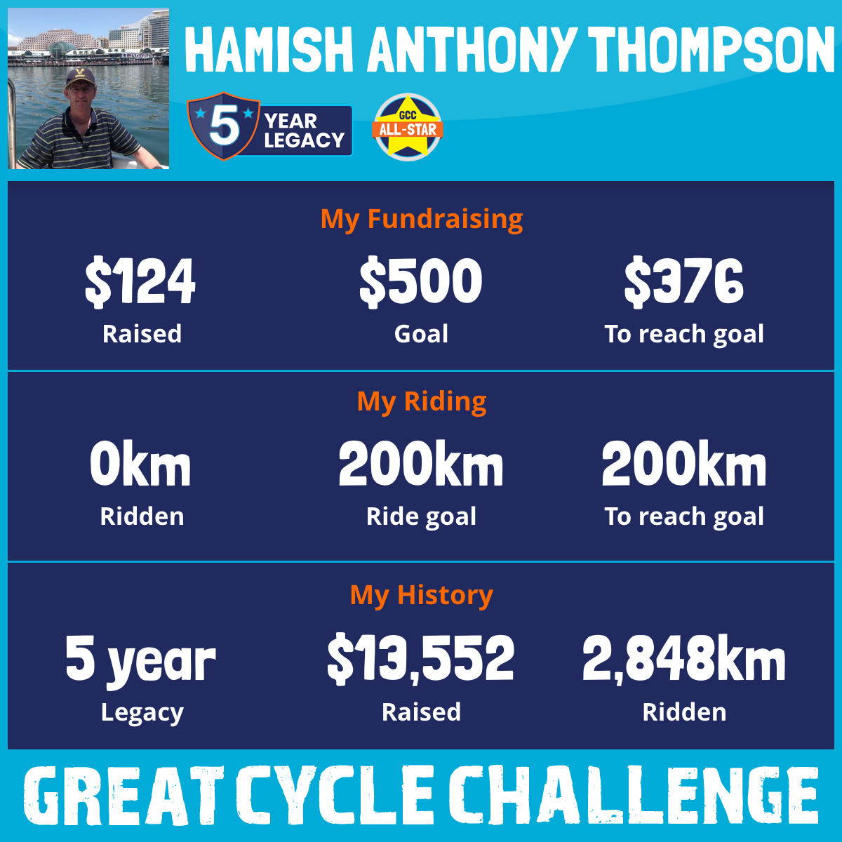 And so I am riding and raising funds to support the Children's Medical Research Institute to continue their work into the prevention, diagnosis, treatment and finding a cure for childhood cancer.