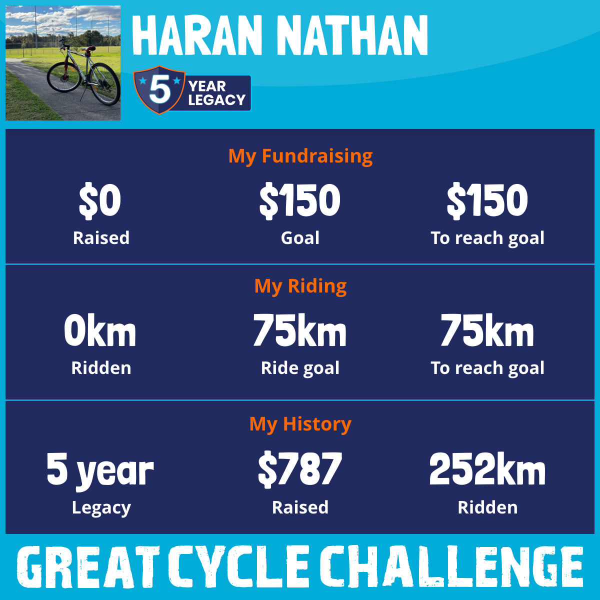 252 km Ridden$787 Raised2021