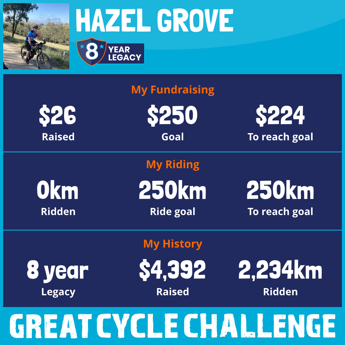 And so I am riding and raising funds to support the Children's Medical Research Institute to continue their work into the prevention, diagnosis, treatment and finding a cure for childhood cancer.