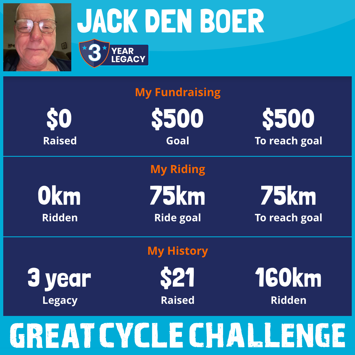 I am riding 75 km in memory of my friend, Graham Madden. Please sponsor me and support my challenge to fight kids' cancer and save little lives.