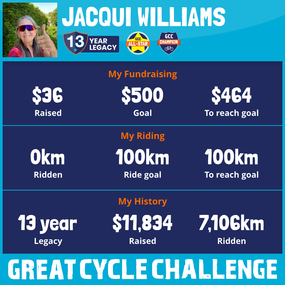 I have been impacted by an injury this year that doesn’t allow me to do something that I love and that is to get on the bike to raise money for this fabulous cause. BUT COLLECTIVELY WE CAN STILL RAISE MONEY FOR THIS IMPORTANT CAUSE.